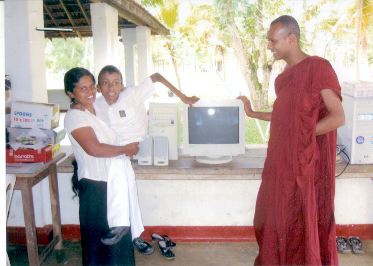 Mr Kumara Welhenage have donated number of computers to Sarana Foundation. Reverend Hakmana Dhammarathan thero kindly accepted the Kumara's Donation. Reverend Thero assured us that he will create a computer club for disadvantaged children whom we are sponsoring.